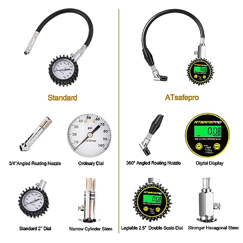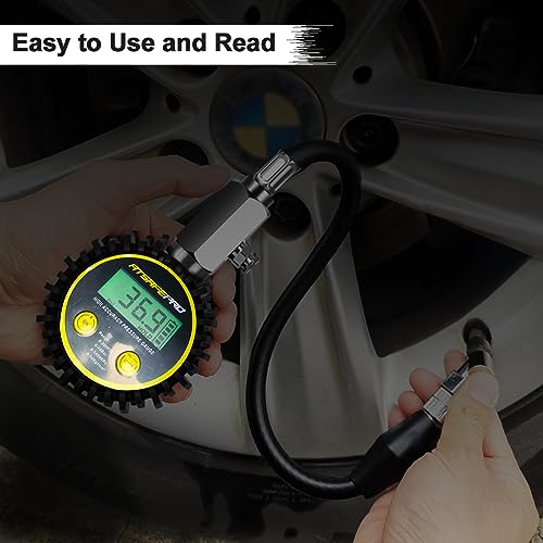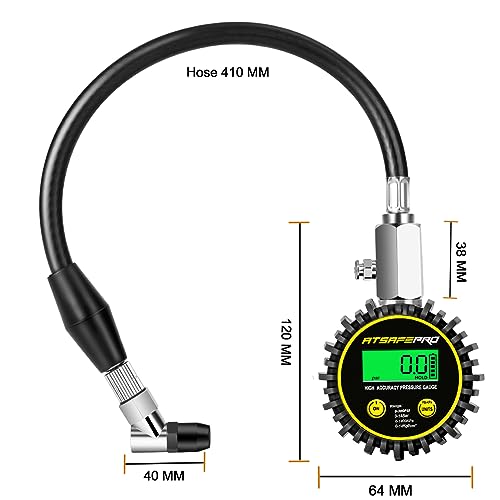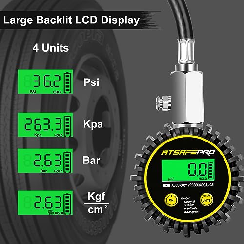 Digital Tire Pressure Gauge,ATsafepro Tire Pressure Gauge with Flexible Hose and Angled Chuck, Tire Pressure Gauge for Cars,Air Pressure Gauge - Professional Accuracy - 200 PSI
