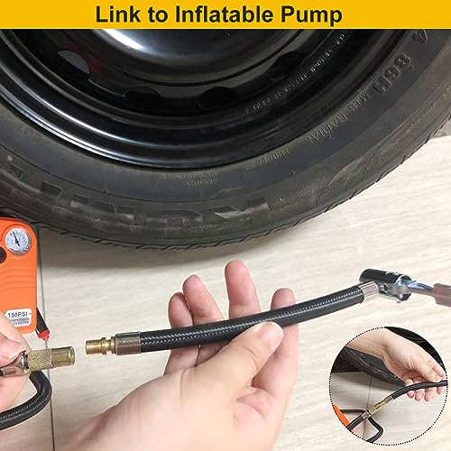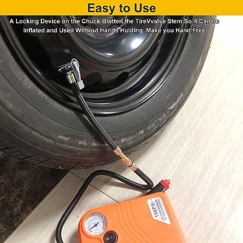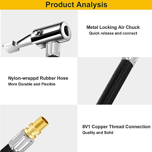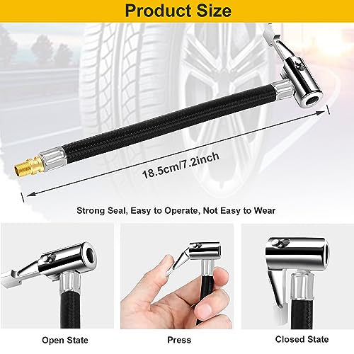 2.Solid and Durable:Portable tire inflator chuck adapter,with all-metal construction,corrosion-resistant,sturdy and durable. Equipped with high-quality braided hose, it is durable and flexible. It is a great tool for both commercial and home use.
