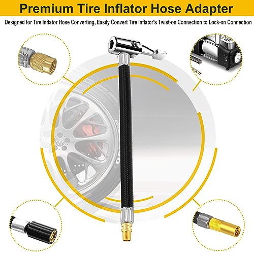 GODESON 6" Tire Inflator Hose Adapter,Air Chuck with Braided Hose and Presta Valve Adaptor for Air Compressor,Schrader Valve Adapter for Tire Pump's Twist On Convert to Lock On Connection